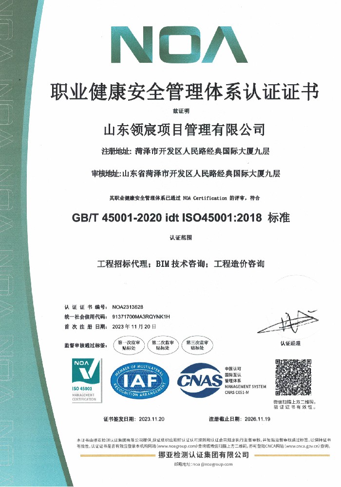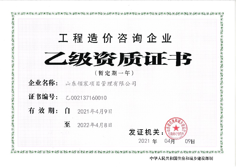 山東領宸項目管理有限公司是一家以全過程工程咨詢?yōu)楹诵牡淖稍兎展荆竟粳F具備工程造價咨詢乙級資質,房屋建筑工程、市政工程監(jiān)理乙級資質和招標代理備案。公司擁有專業(yè)的工作團隊及豐富的行業(yè)經驗,在行業(yè)領域內具有雄厚的實力,企業(yè)管理人員擁有行業(yè)20年以上的資深行業(yè)工作經驗。公司現有專業(yè)技術人員50余人,具有一級注冊造價工程師、注冊監(jiān)理工程師、一級注冊建造師、二級注冊建造師、招標師等工程類國家注冊執(zhí)業(yè)資格證書人員合計30余人以及高級工程師3人,持證上崗率達到90%......